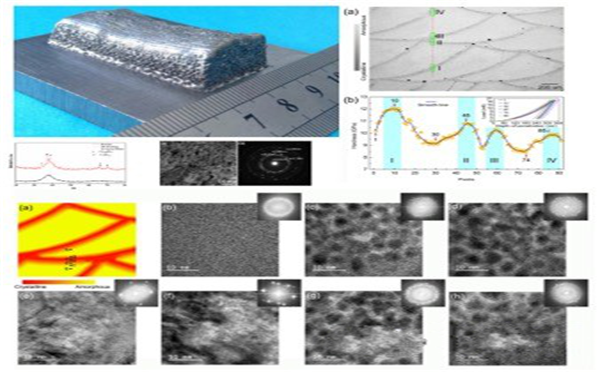 上述3所高校研究人員利用同軸送粉激光3D打印技術,通過有限元模擬的方法優(yōu)化佳工藝參數(shù),成功制備出大尺寸、非晶含量較高、且具有梯度結構的Zr基非晶合金。本研究成果不僅提供了一種制備大尺寸具有復雜形狀的非晶合金的新方法,也為促進高性能非晶合金在工程和功能領域的大規(guī)模應用奠定了基礎。、遼寧省教育廳重點實驗室基礎研究項目的資助。)